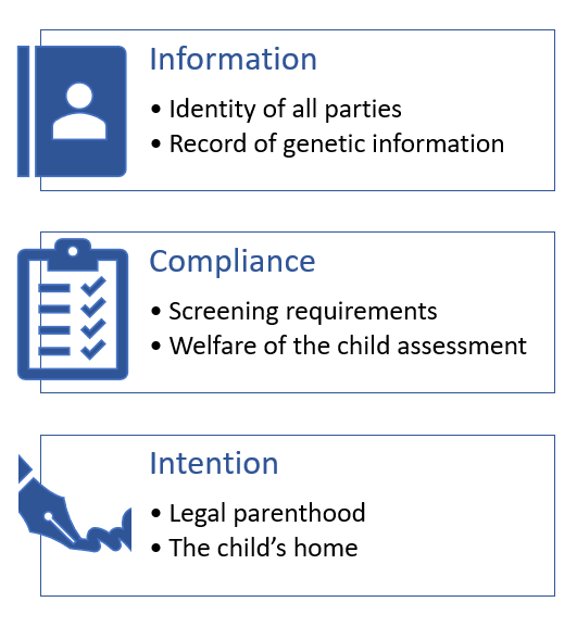 The role of the RSS would therefore be multiple-faceted. Ultimately, it would be a recorded declaration by all parties of their compliance with the relevant legal framework and intention for the arrangement to progress on the new pathway, with the effect being for the intended parents to acquire legal parenthood from birth.
